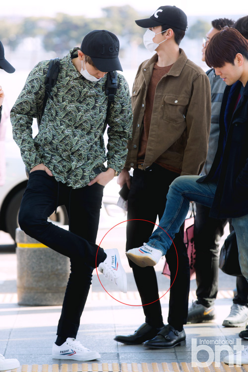 유난히 큰 키로 때와 장소를 가리지 않고 유난히 돋보이는 찬열. 오늘은 매니저와 뜻하지 않게 같은 신발을 신고 와 재밌는 그림을 만들어주었죠.