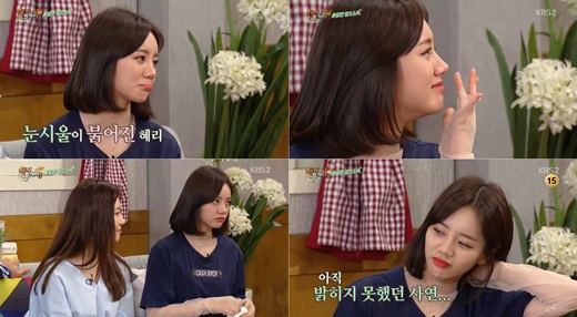 또 이날 혜리는 어린시절 넉넉지 못한 가정형편을 언급하며 “1년에 한 번씩 이사를 다녔다”며 “나중에 어른이 되면 엄마아빠 집을 사드려야겠다는 생각을 했었다. 돈 벌자마자 집을 사드렸다. 더 모이면 더 큰 집으로 사 주고싶다”고 밝혔다.