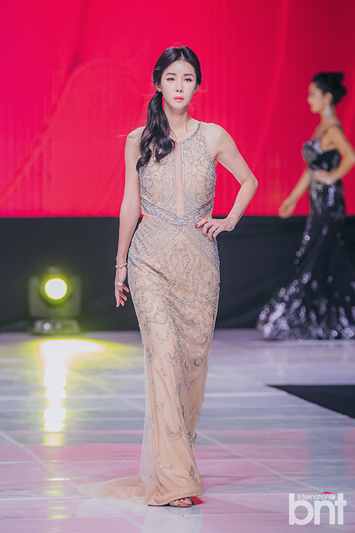 29일 슈퍼탤런트 패션위크 크리스탈 패션쇼에서 멀티 인플루언서 양쥐언니 양지혜가 워킹을 선보이고 있다.