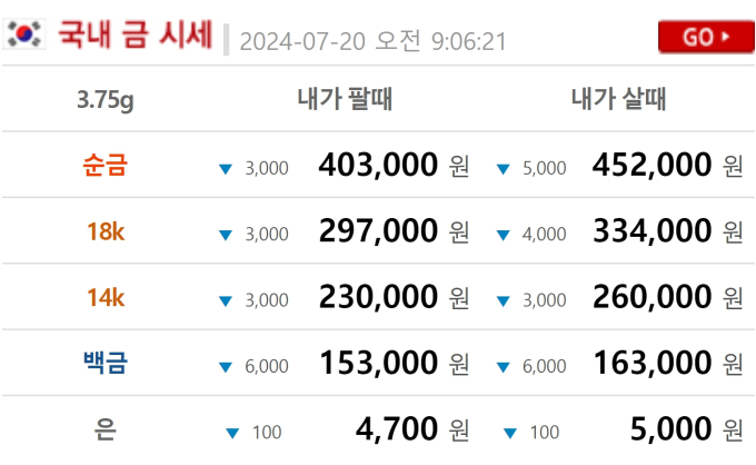 한돈이 3.75g인 것을 감안하면 1돈당 402,228원이다. (Gold24k-3.75g)