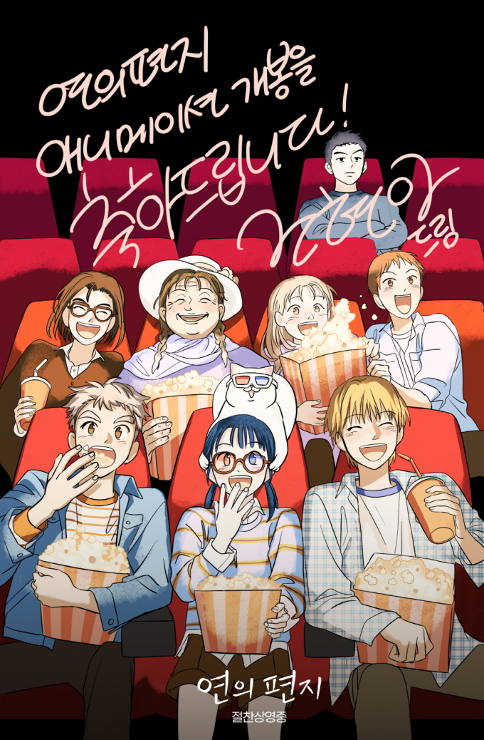 이처럼 웹툰부터 영화에 이르기까지 뜨거운 사랑을 받고 있는 '연의 편지'가 극장 개봉을 기념해 공개된 원작자 조현아 작가의 축전을 공개했다. 공개된 축전에는 ‘소리’, ‘동순’, ‘호연’이 극장에서 팝콘과 함께 영화를 관람하며 미소 짓는 모습이 담겨 애니메이션 영화 '연의 편지'의 극장 개봉에 의미를 더한다.