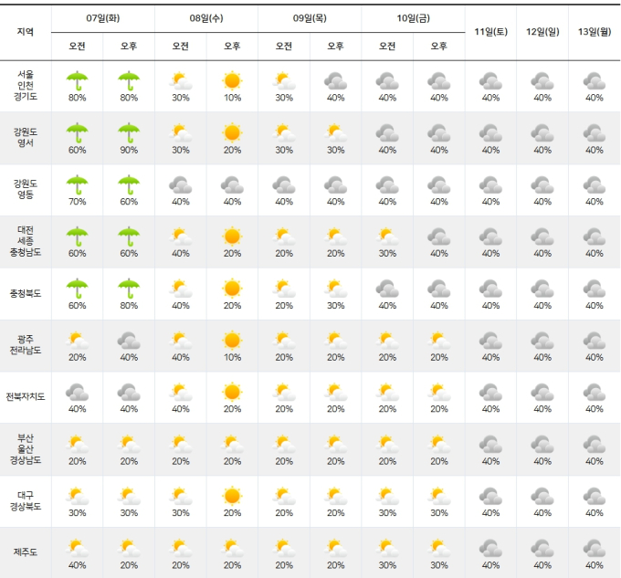 ⓒ기상청 다음주날씨, 주간날씨, 주간예보, 중기예보