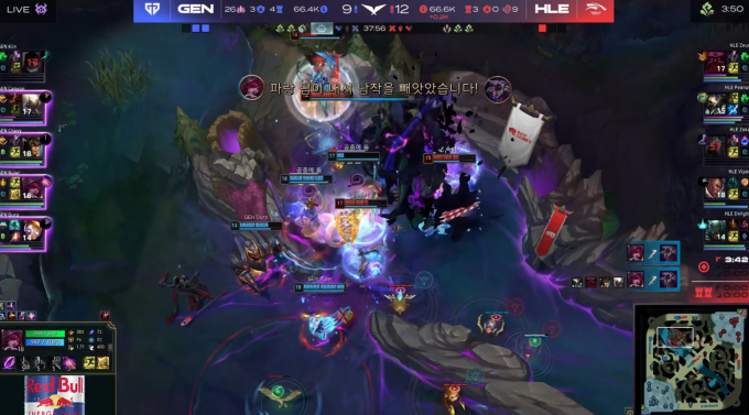 경기는 중반을 넘어서며 더욱 치열해졌다. 한화생명은 '제카' 김건우의 아칼리가 주요 교전마다 폭발적인 암살 능력을 선보이며 젠지의 주요 딜러들을 끊어냈다. 특히 한화생명은 드래곤 스택을 꾸준히 쌓으며 후반 운영의 발판을 마련했다. 젠지도 쉽게 물러서지 않고 오브젝트를 두고 계속해서 교전을 유도하며 반격의 기회를 노렸다.